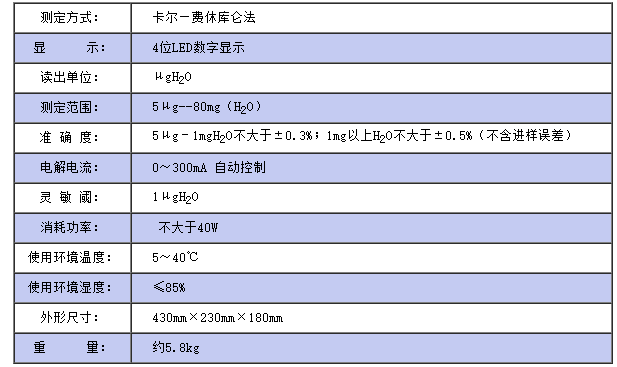 儀器符合GB/T7600及采用卡爾—費休法測定樣品中水分的有關標準,儀器采用了先進的自動控制電路,電解電流自動跟蹤控制,外型結構新穎,從而使該儀器工作更可靠,使用更方便, 具有分析速度快(一分鐘出結果)、操作簡便、精度高、自動性強等特點,廣泛應用于石油、化工、電力、鐵路、環(huán)保等部門。
